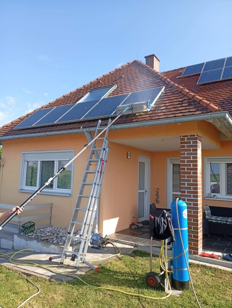 Wir reinigen private Dächer mit Photovoltaikanlagen sowie größere Solarparks.