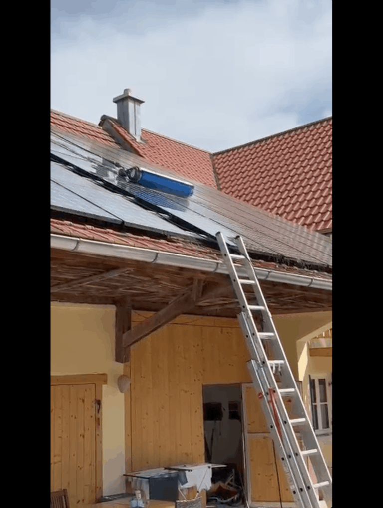 Reinigung von Photovoltaikanlagen auf Stalldächern und landwirtschaftlichen Gebäuden.